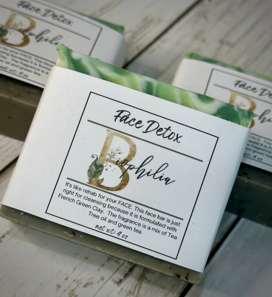 This is the long awaited cold-process version of one of our best selling face bars. Designed for deep cleansing that stubborn dirt and grime on your face. Made with French Green Clay. Tea Tree Oil, and Green Tea.